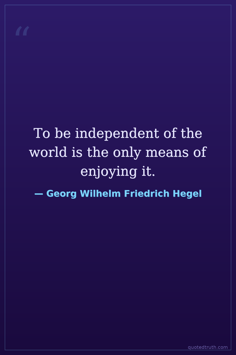 To be independent of the world is the only means of enjoying it.