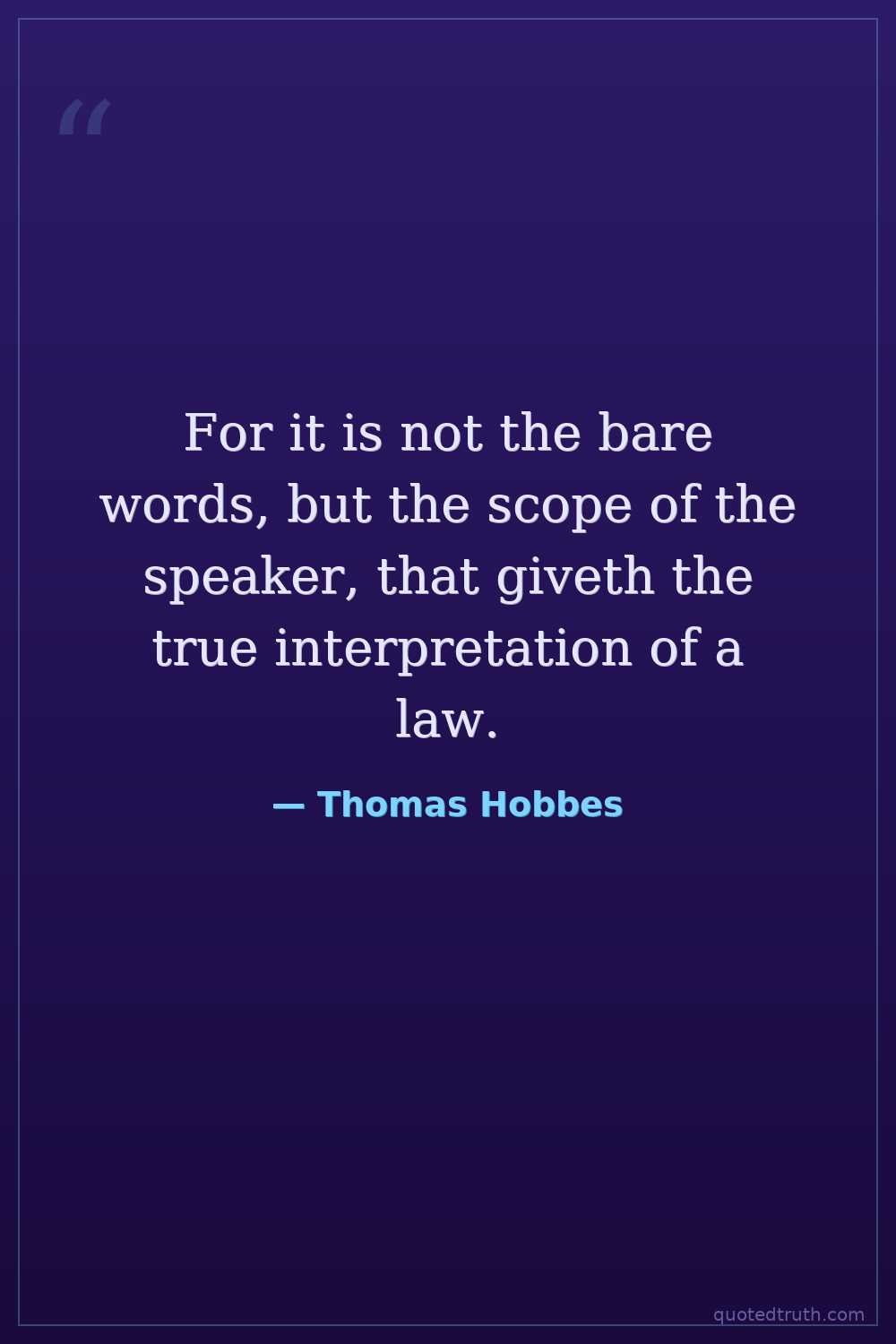 For it is not the bare words, but the scope of the speaker, that giveth the true interpretation of a law.