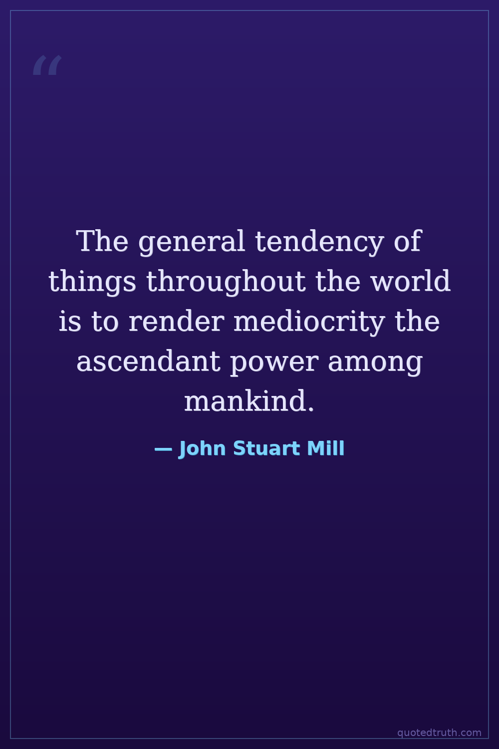 The general tendency of things throughout the world is to render mediocrity the ascendant power among mankind.