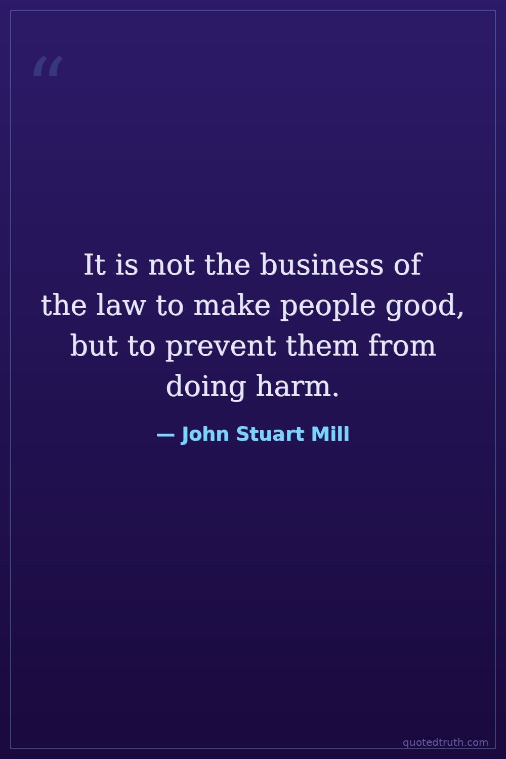 It is not the business of the law to make people good, but to prevent them from doing harm.