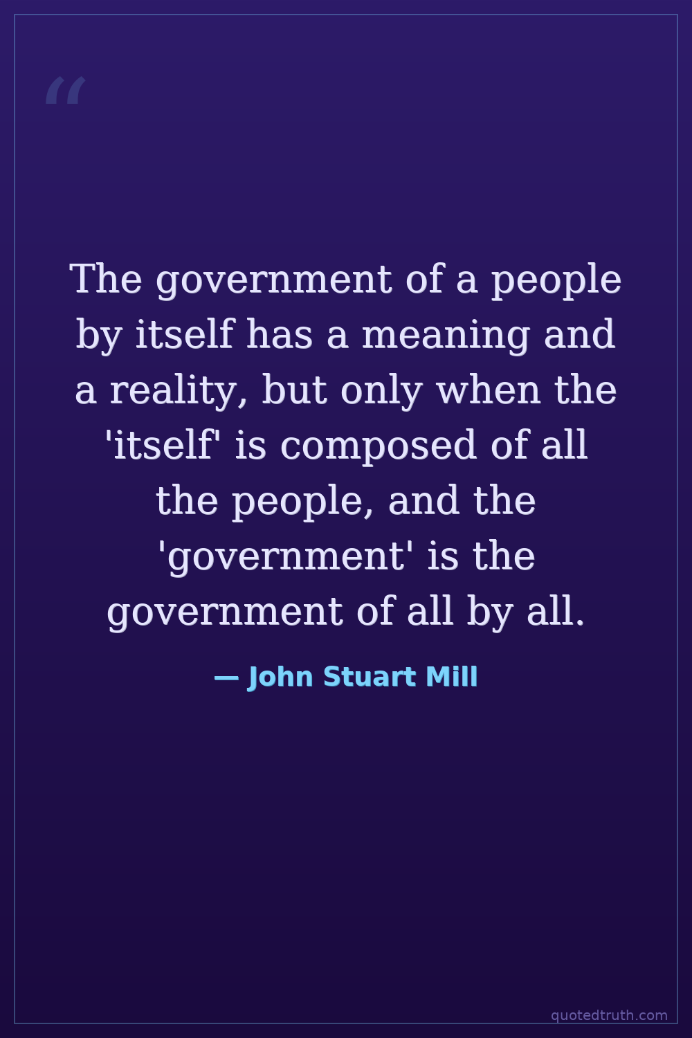 The government of a people by itself has a meaning and a reality, but only when the 'itself' is composed of all the people, and the 'government' is the government of all by all.