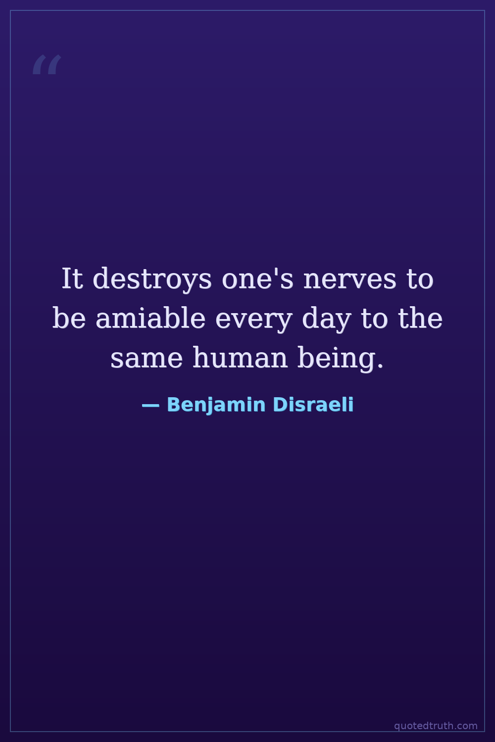 It destroys one's nerves to be amiable every day to the same human being.