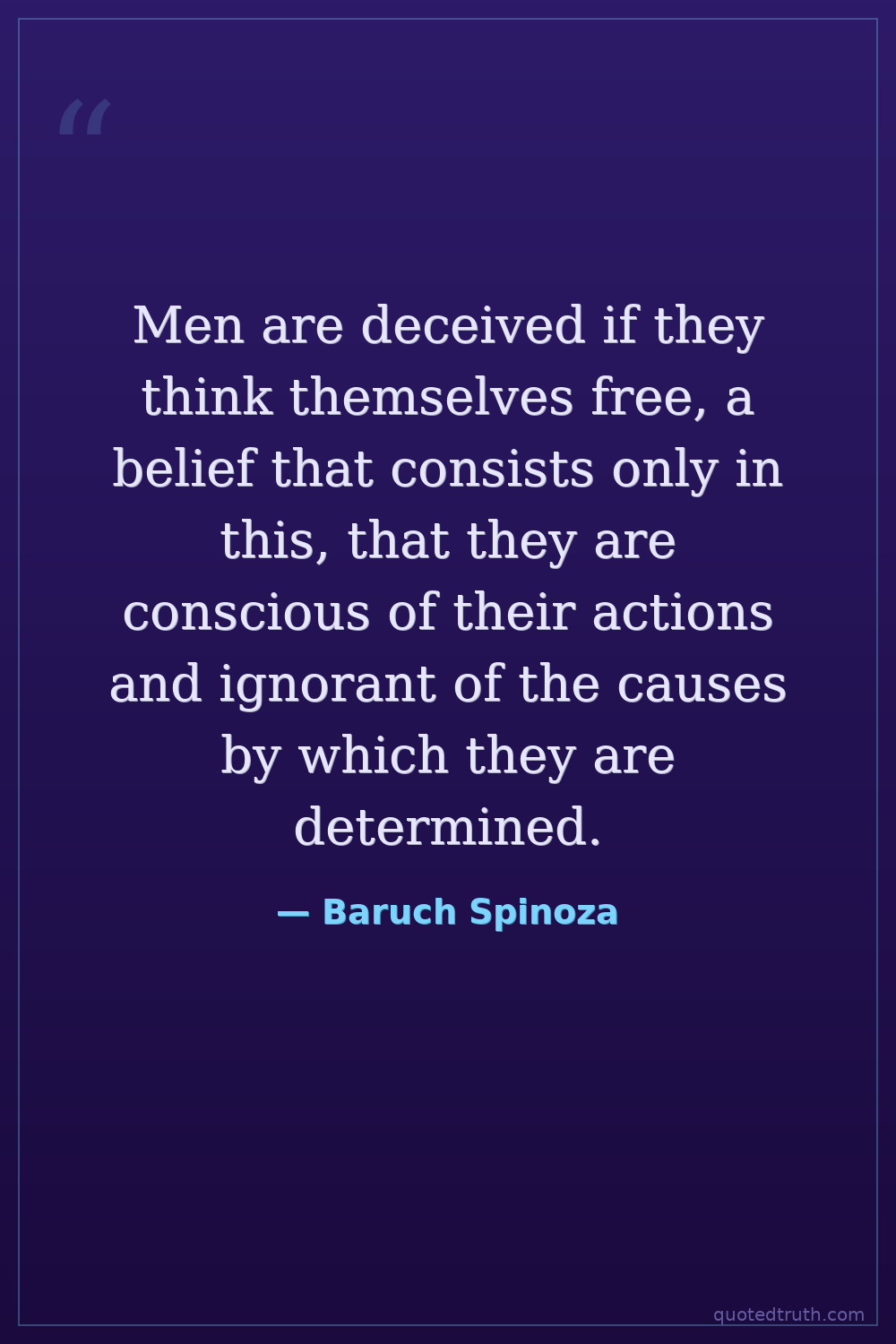 Men are deceived if they think themselves free, a belief that consists only in this, that they are conscious of their actions and ignorant of the causes by which they are determined.