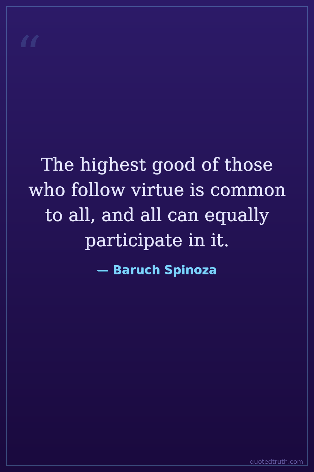 The highest good of those who follow virtue is common to all, and all can equally participate in it.