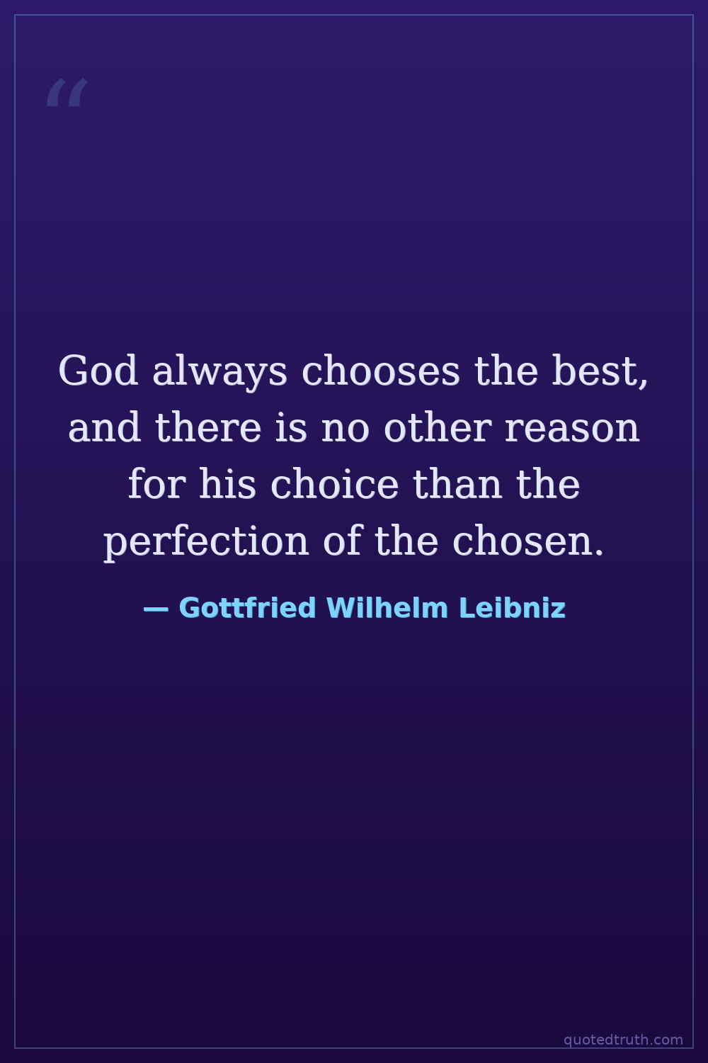 God always chooses the best, and there is no other reason for his choice than the perfection of the chosen.