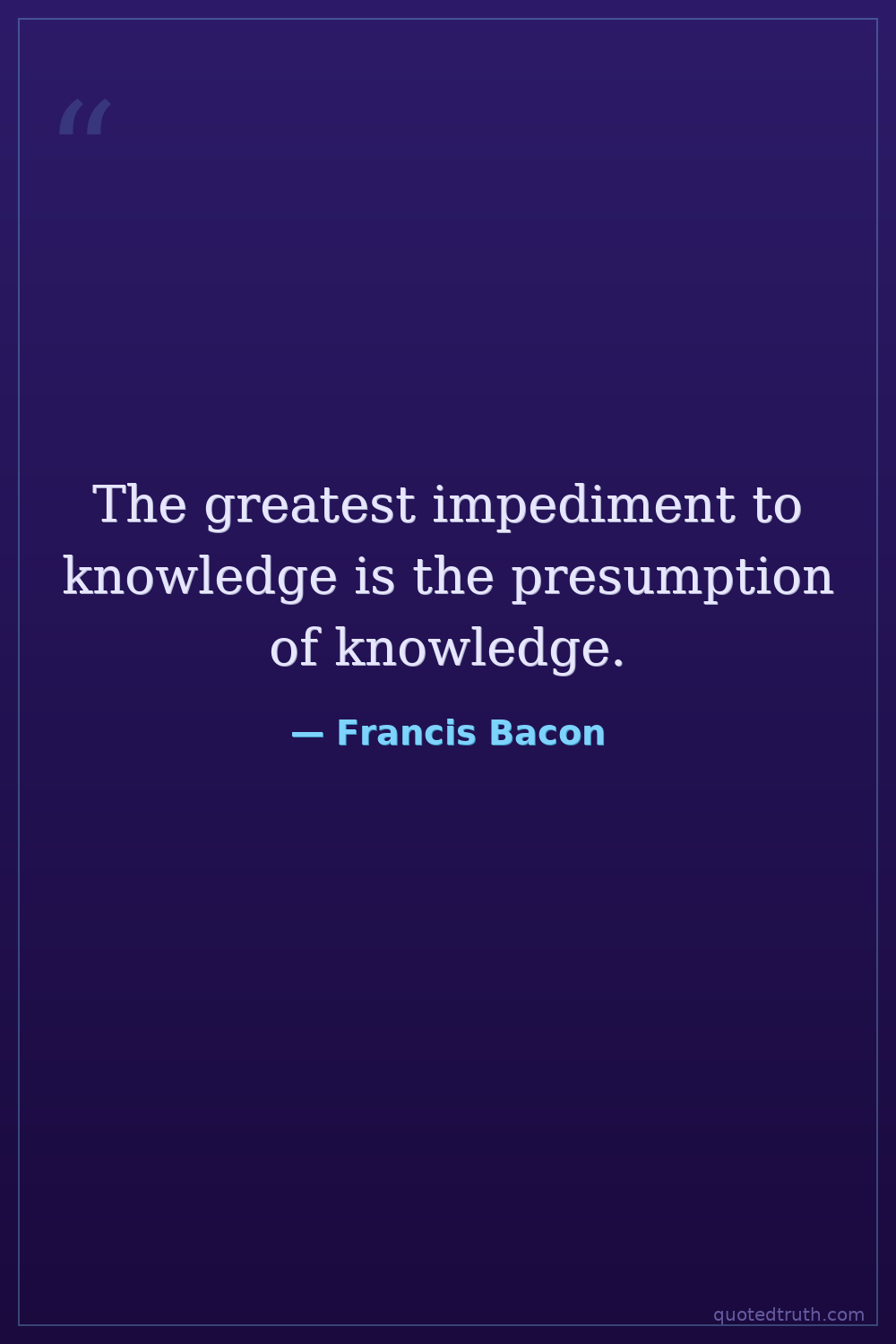 The greatest impediment to knowledge is the presumption of knowledge.