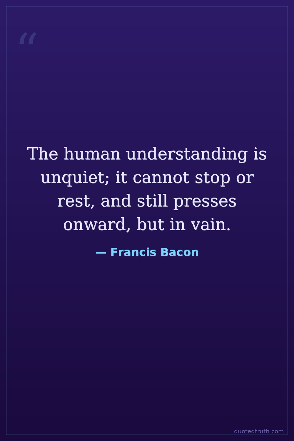 The human understanding is unquiet; it cannot stop or rest, and still presses onward, but in vain.