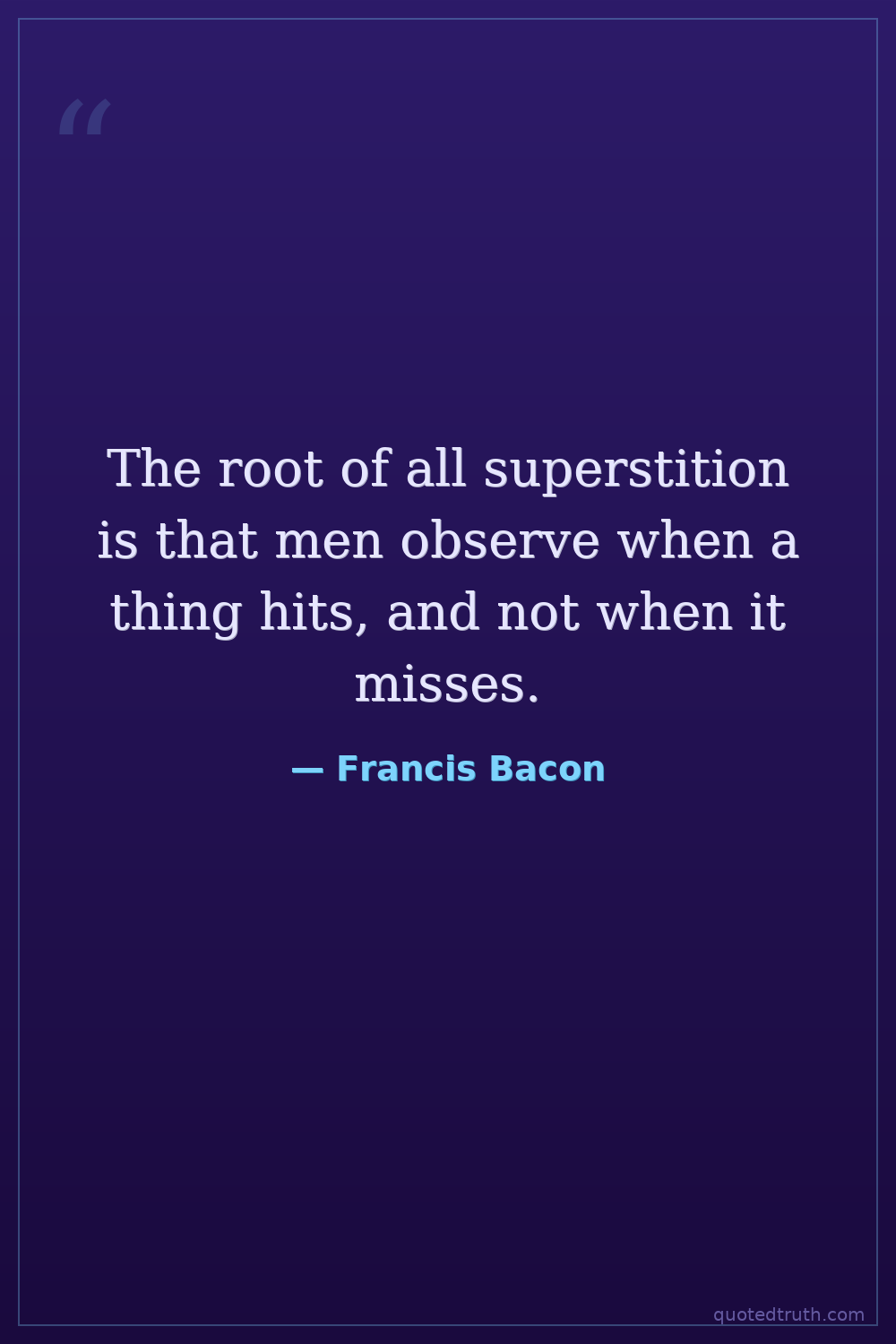 The root of all superstition is that men observe when a thing hits, and not when it misses.