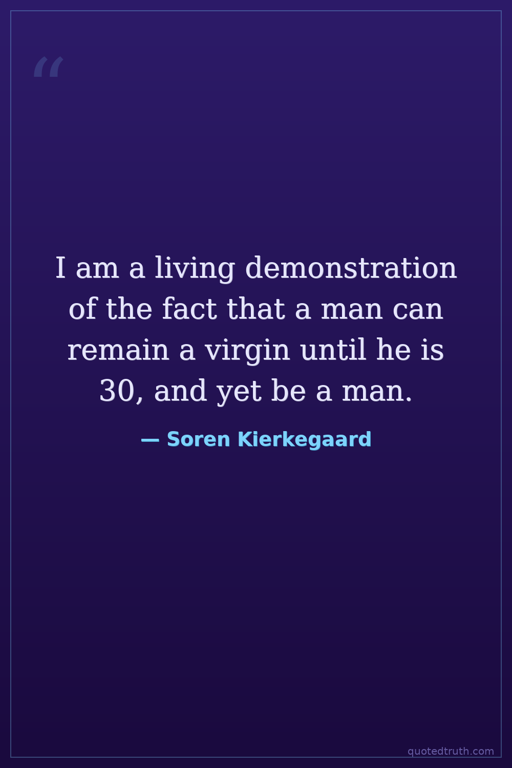 I am a living demonstration of the fact that a man can remain a virgin until he is 30, and yet be a man.