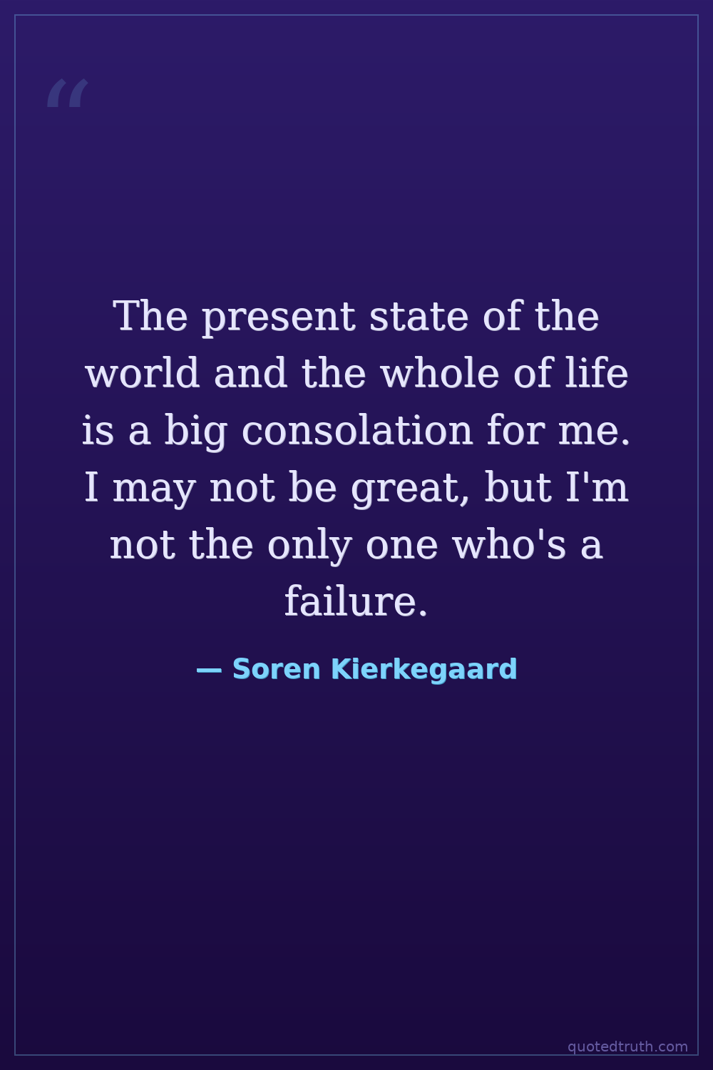 The present state of the world and the whole of life is a big consolation for me. I may not be great, but I'm not the only one who's a failure.