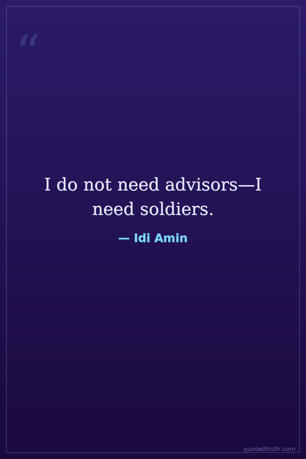 Philosophical"Power is not given, it is seized—just as I seized Uganda."