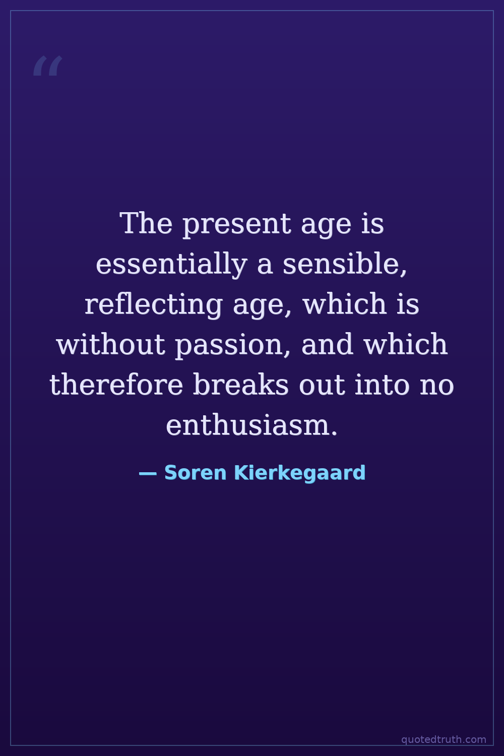 The present age is essentially a sensible, reflecting age, which is without passion, and which therefore breaks out into no enthusiasm.