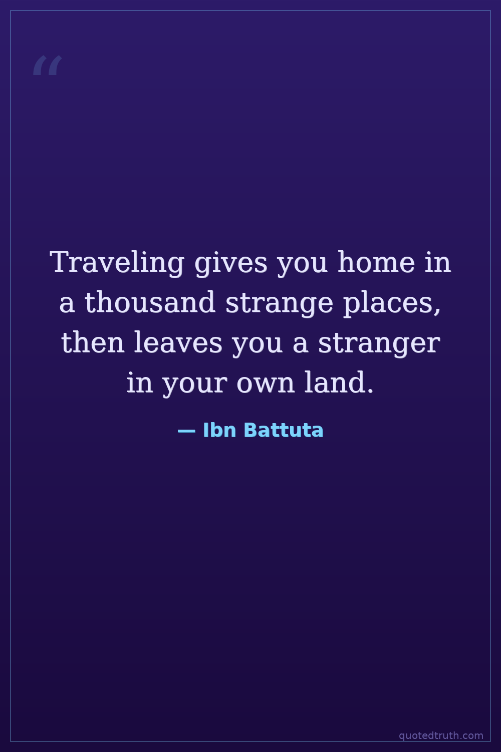Traveling gives you home in a thousand strange places, then leaves you a stranger in your own land.