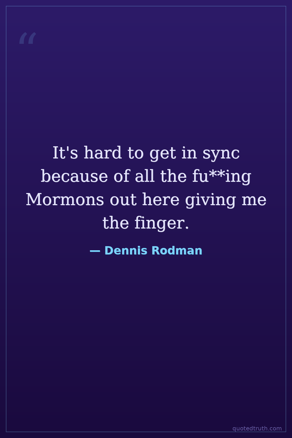 It's hard to get in sync because of all the fu**ing Mormons out here giving me the finger.