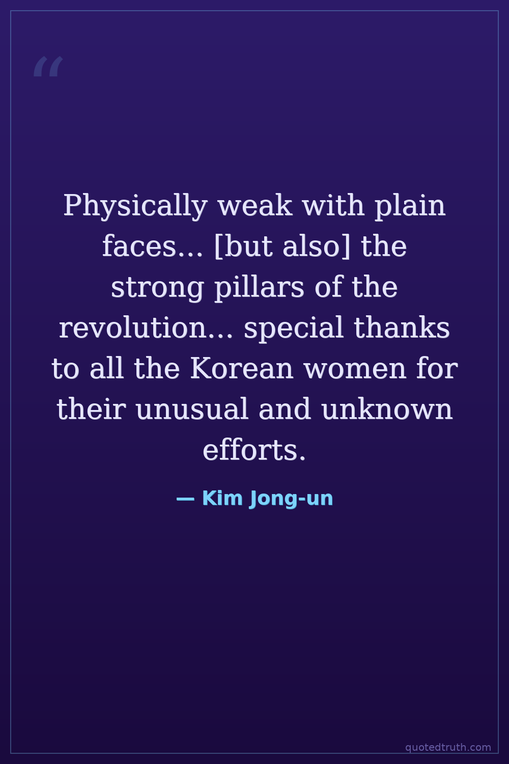 Physically weak with plain faces... [but also] the strong pillars of the revolution... special thanks to all the Korean women for their unusual and unknown efforts.