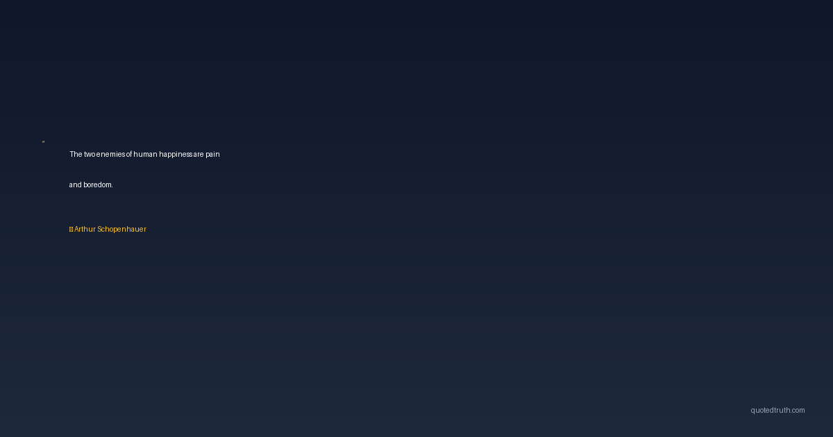 The two enemies of human happiness are pain and boredom.