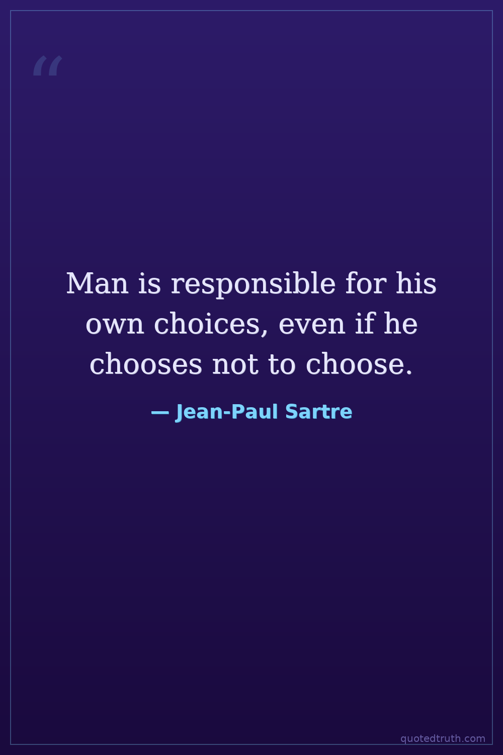 Man is responsible for his own choices, even if he chooses not to choose.
