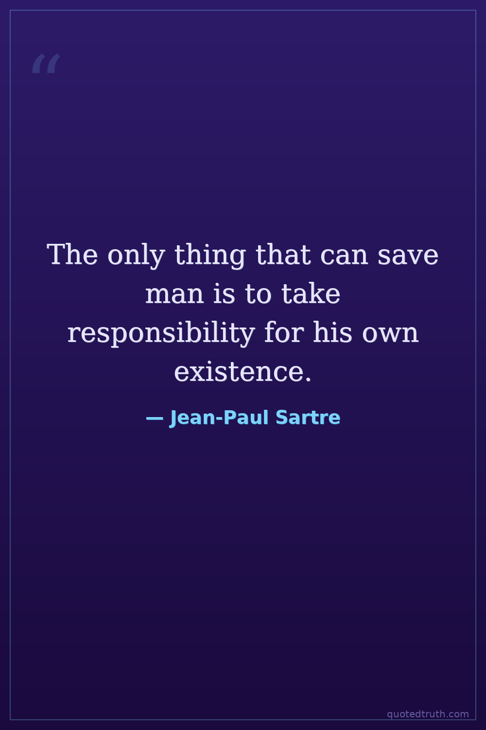 The only thing that can save man is to take responsibility for his own existence.
