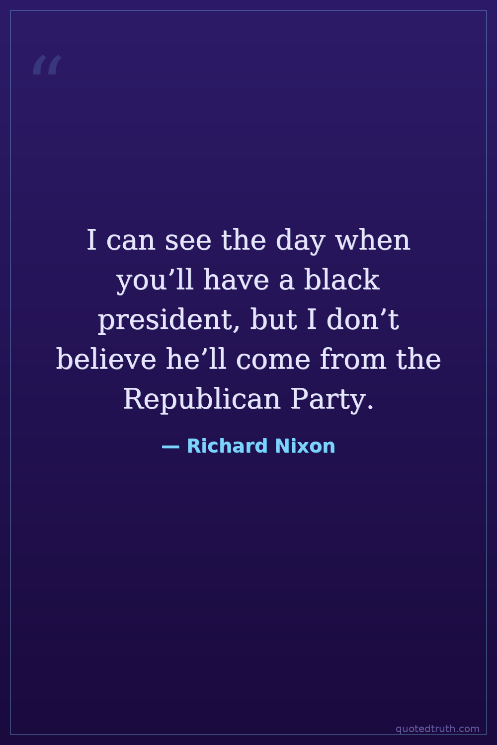 I can see the day when you’ll have a black president, but I don’t believe he’ll come from the Republican Party.