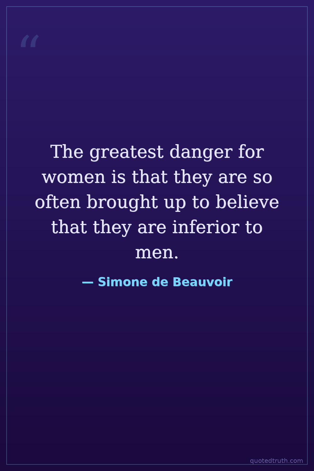 The greatest danger for women is that they are so often brought up to believe that they are inferior to men.