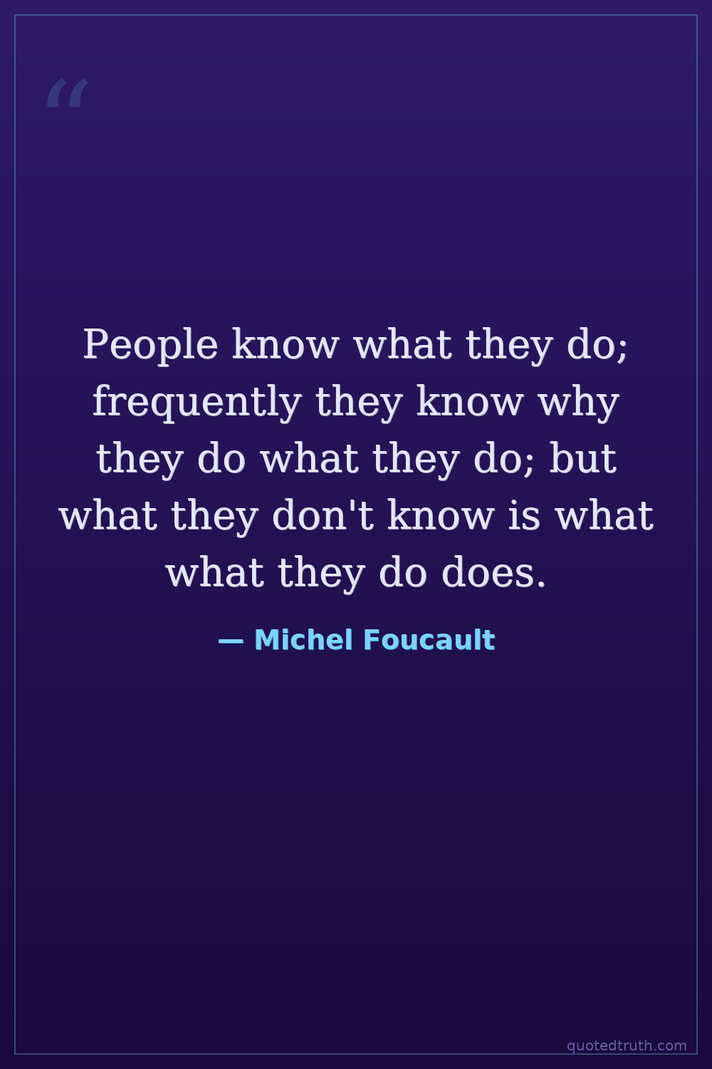 People know what they do; frequently they know why they do what they do; but what they don't know is what what they do does.