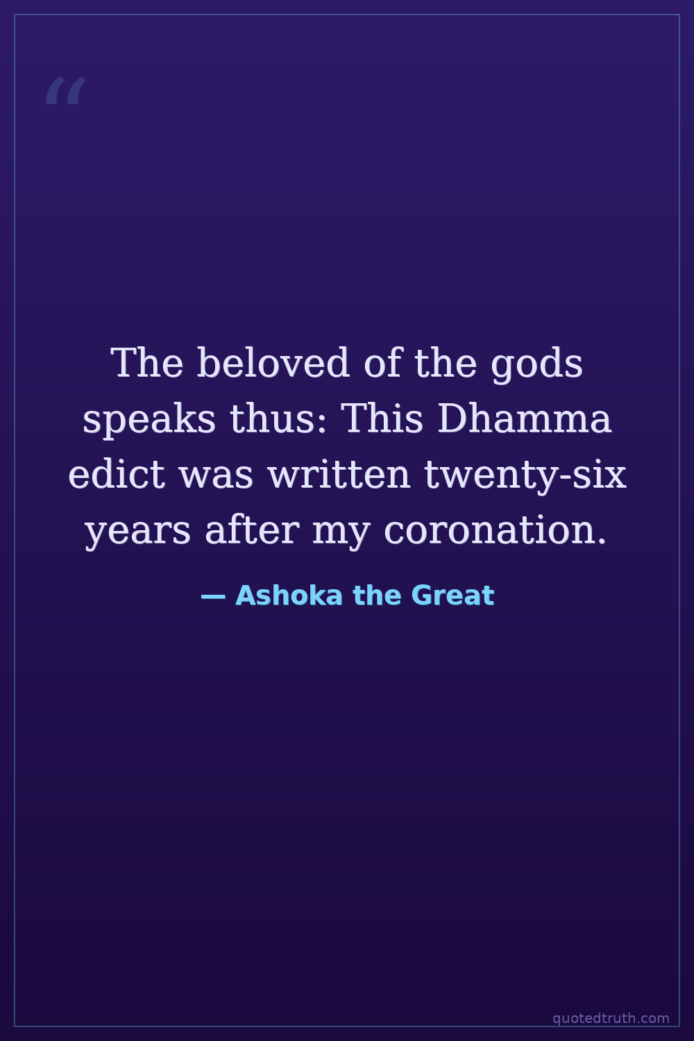 The beloved of the gods speaks thus: This Dhamma edict was written twenty-six years after my coronation.