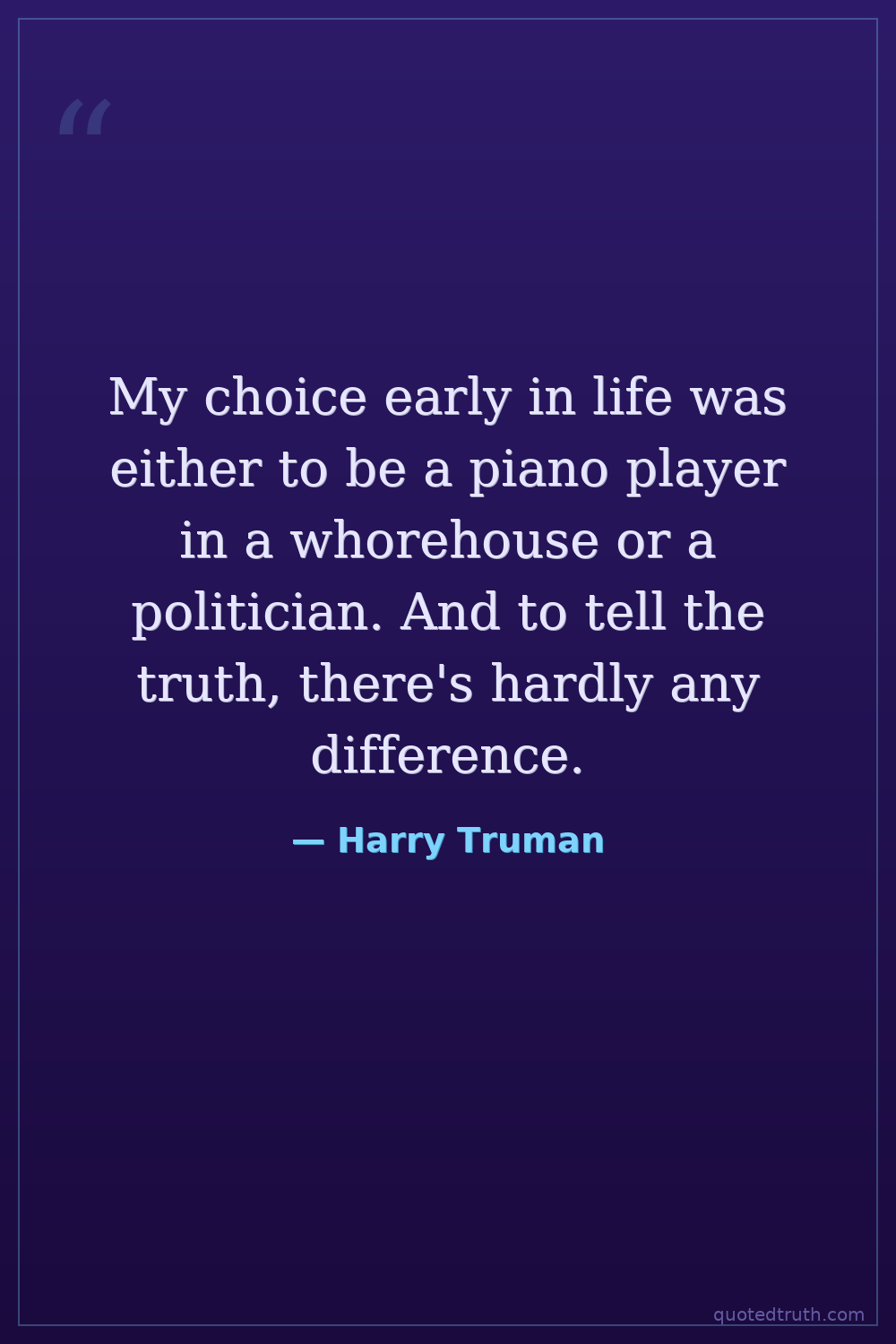 My choice early in life was either to be a piano player in a whorehouse or a politician. And to tell the truth, there's hardly any difference.