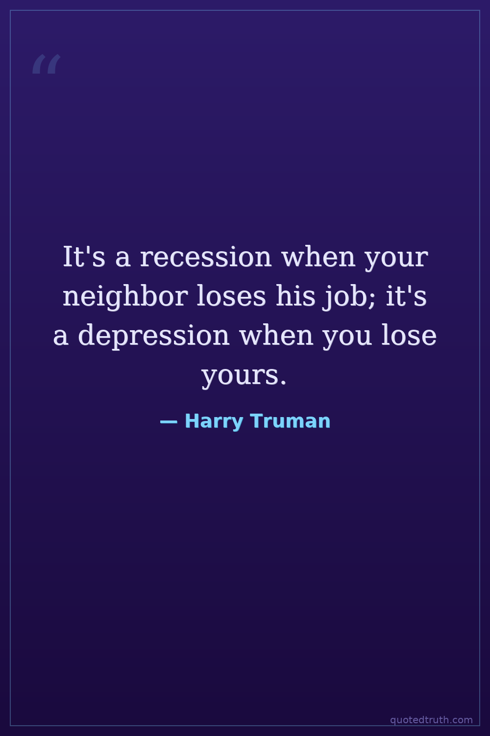 It's a recession when your neighbor loses his job; it's a depression when you lose yours.