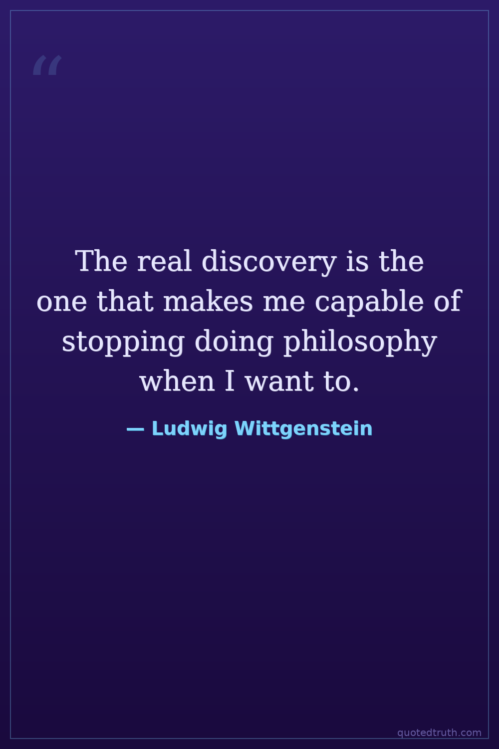 The real discovery is the one that makes me capable of stopping doing philosophy when I want to.