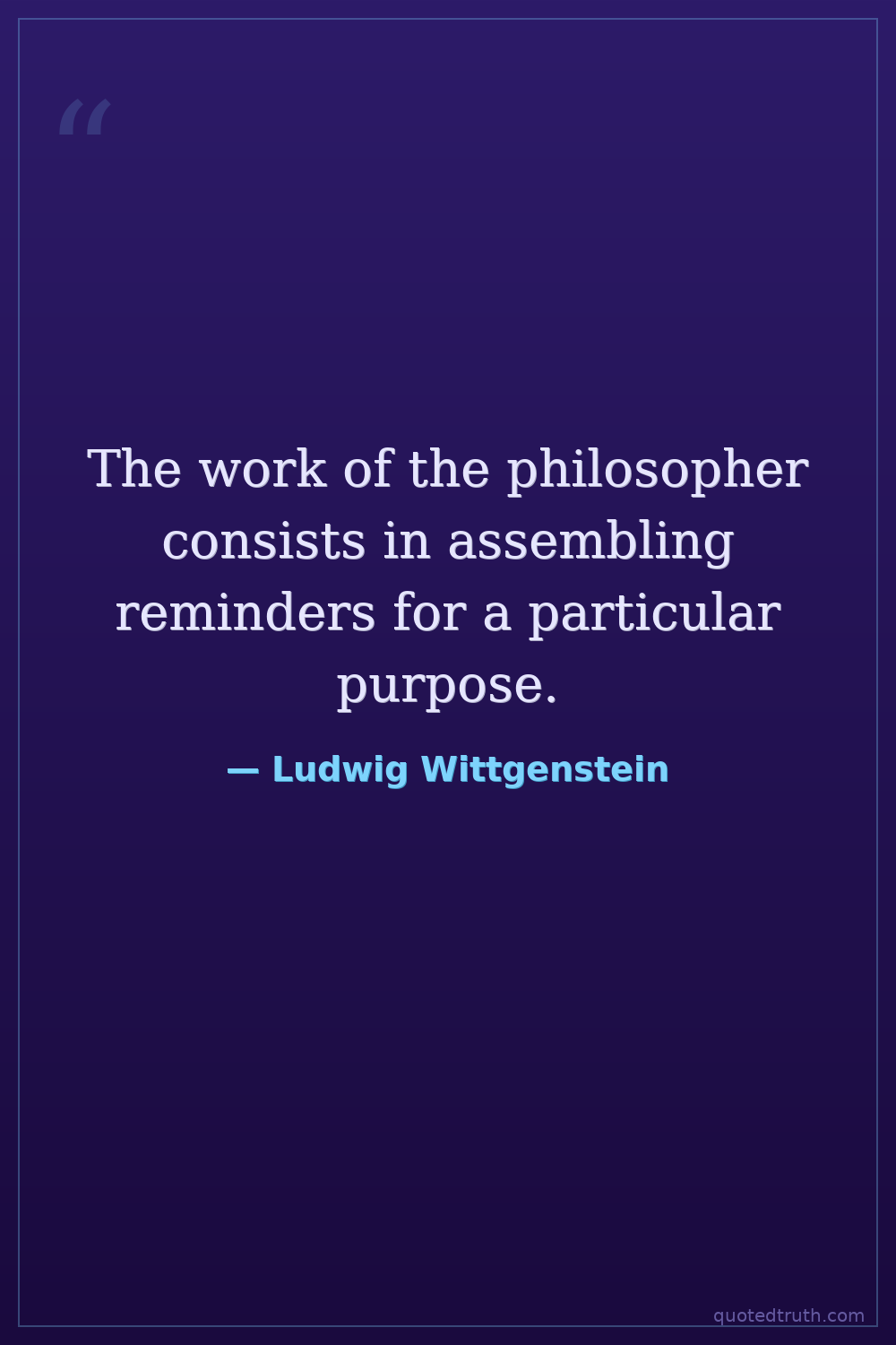 The work of the philosopher consists in assembling reminders for a particular purpose.