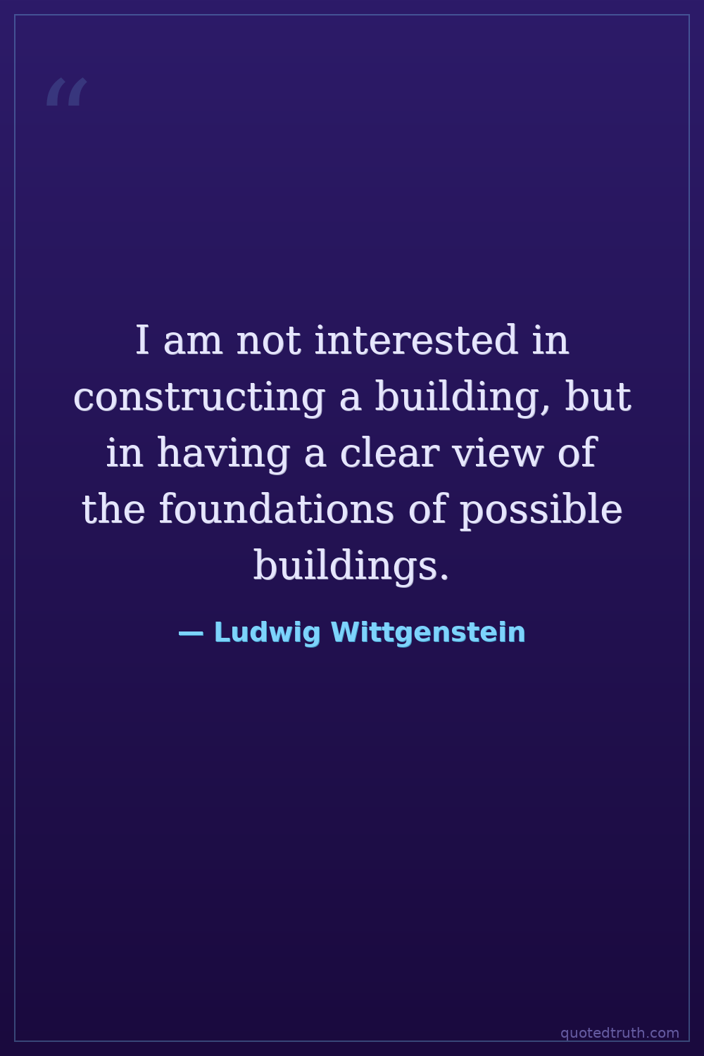 I am not interested in constructing a building, but in having a clear view of the foundations of possible buildings.