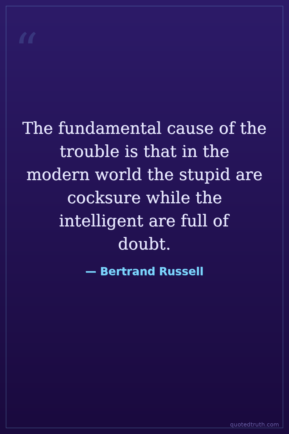 The fundamental cause of the trouble is that in the modern world the stupid are cocksure while the intelligent are full of doubt.