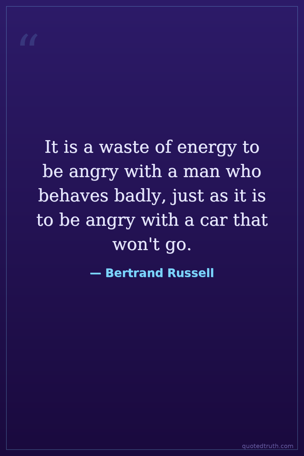 It is a waste of energy to be angry with a man who behaves badly, just as it is to be angry with a car that won't go.