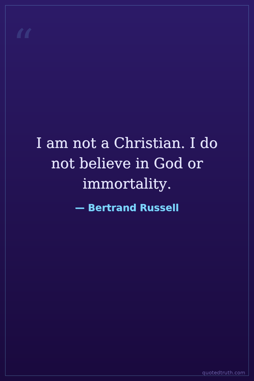 I am not a Christian. I do not believe in God or immortality.