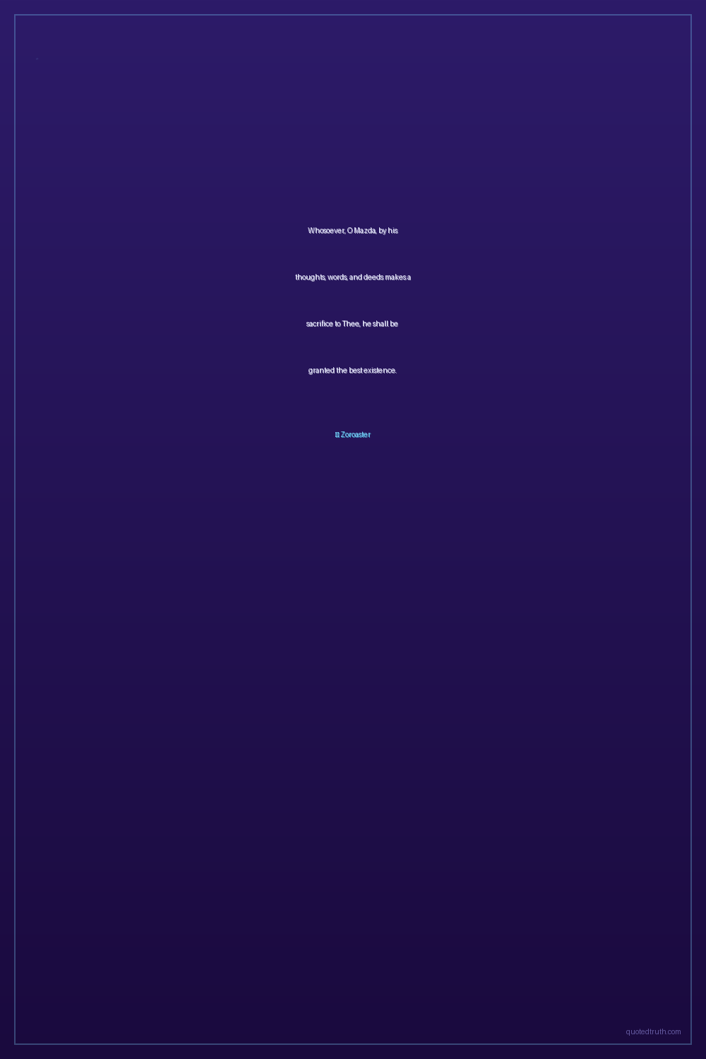 Whosoever, O Mazda, by his thoughts, words, and deeds makes a sacrifice to Thee, he shall be granted the best existence.