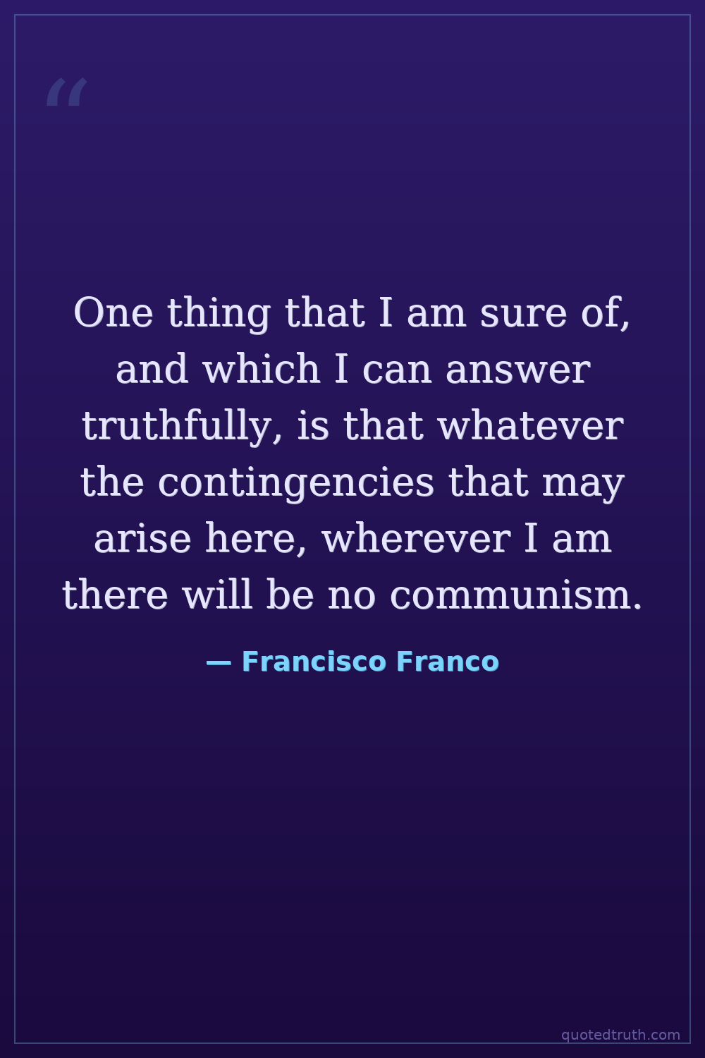 One thing that I am sure of, and which I can answer truthfully, is that whatever the contingencies that may arise here, wherever I am there will be no communism.