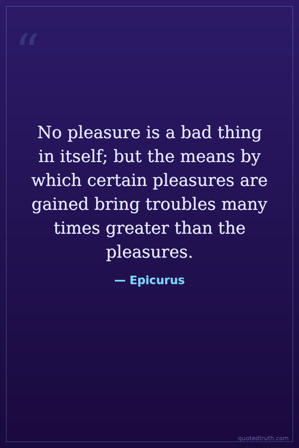 No pleasure is a bad thing in itself; but the means by which certain pleasures are gained bring troubles many times greater than the pleasures.