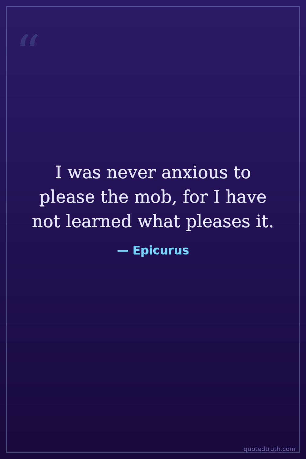 I was never anxious to please the mob, for I have not learned what pleases it.