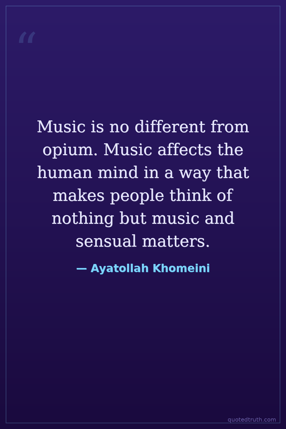 Music is no different from opium. Music affects the human mind in a way that makes people think of nothing but music and sensual matters.