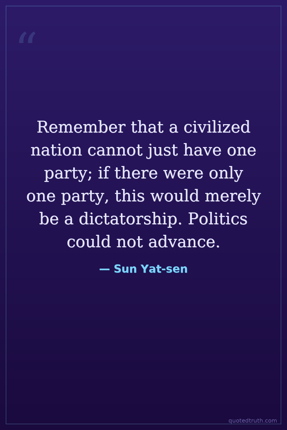 Remember that a civilized nation cannot just have one party; if there were only one party, this would merely be a dictatorship. Politics could not advance.