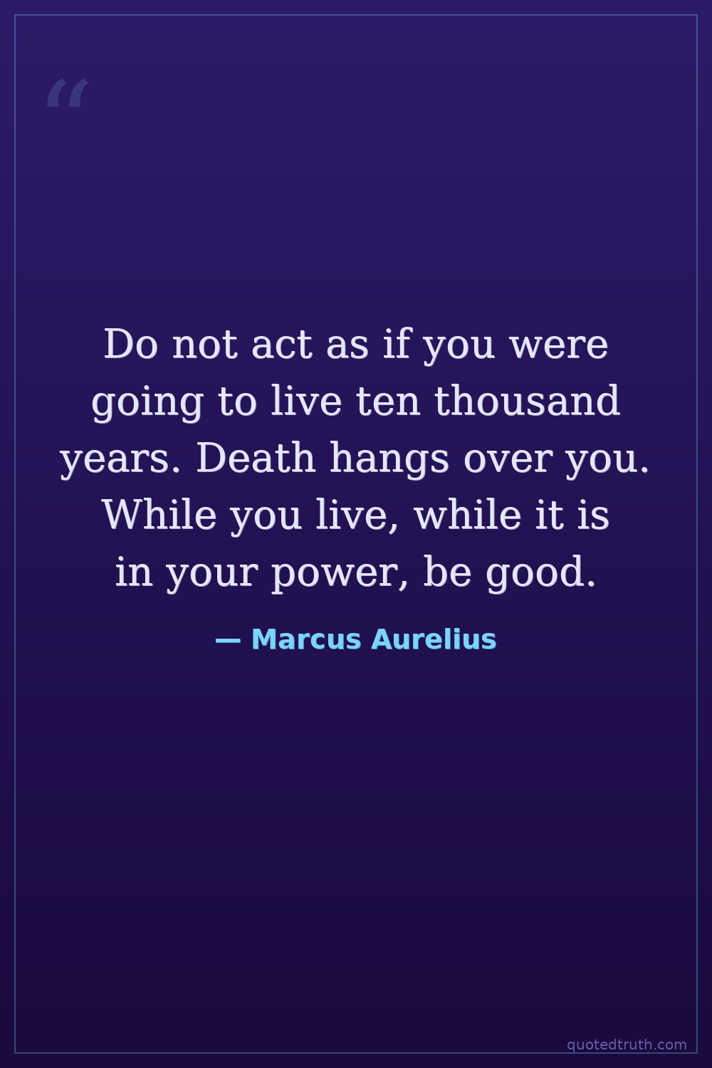 Do not act as if you were going to live ten thousand years. Death hangs over you. While you live, while it is in your power, be good.