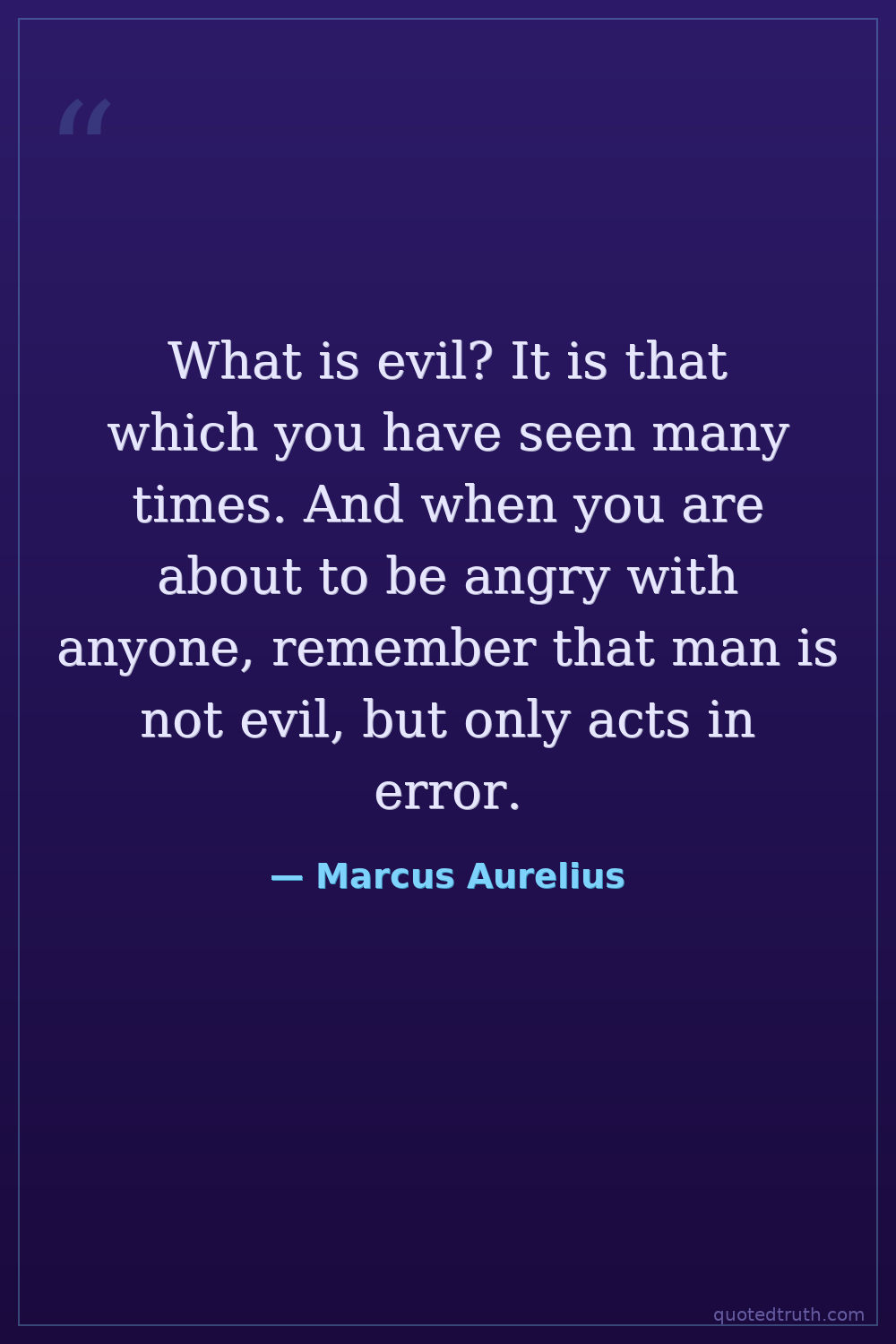 What is evil? It is that which you have seen many times. And when you are about to be angry with anyone, remember that man is not evil, but only acts in error.