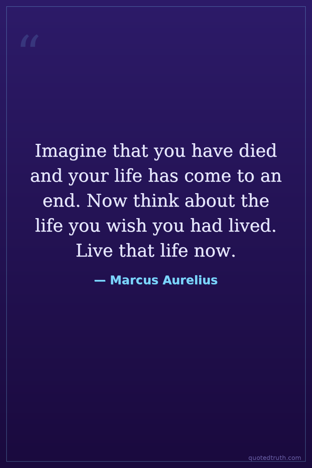 Imagine that you have died and your life has come to an end. Now think about the life you wish you had lived. Live that life now.