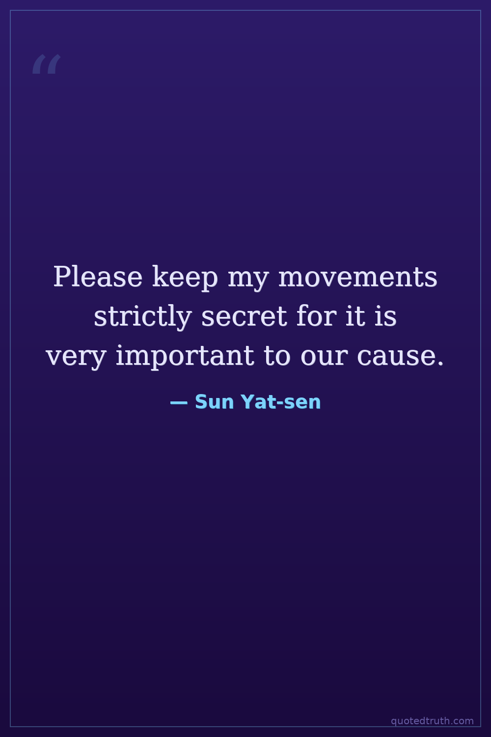 Please keep my movements strictly secret for it is very important to our cause.
