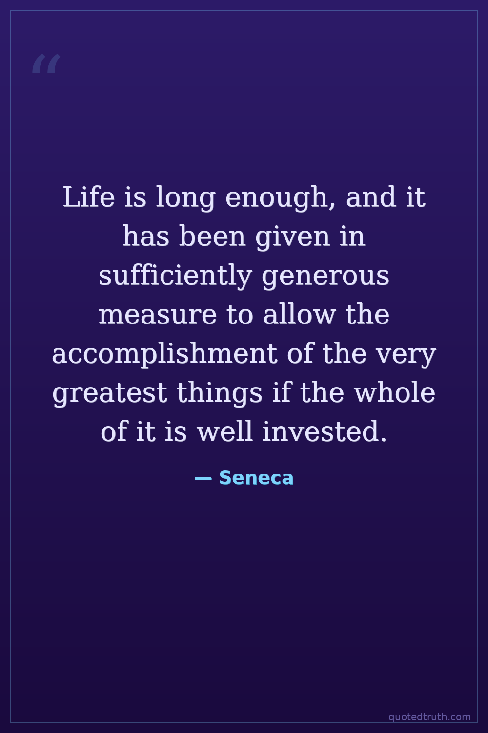 Life is long enough, and it has been given in sufficiently generous measure to allow the accomplishment of the very greatest things if the whole of it is well invested.