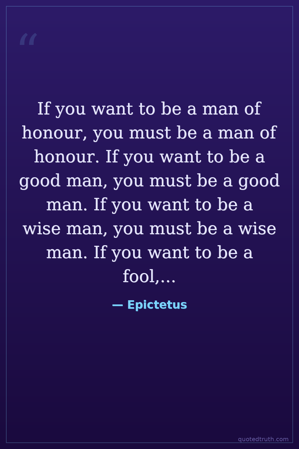 If you want to be a man of honour, you must be a man of honour. If you want to be a good man, you must be a good man. If you want to be a wise man, you must be a wise man. If you want to be a fool, you must be a fool.