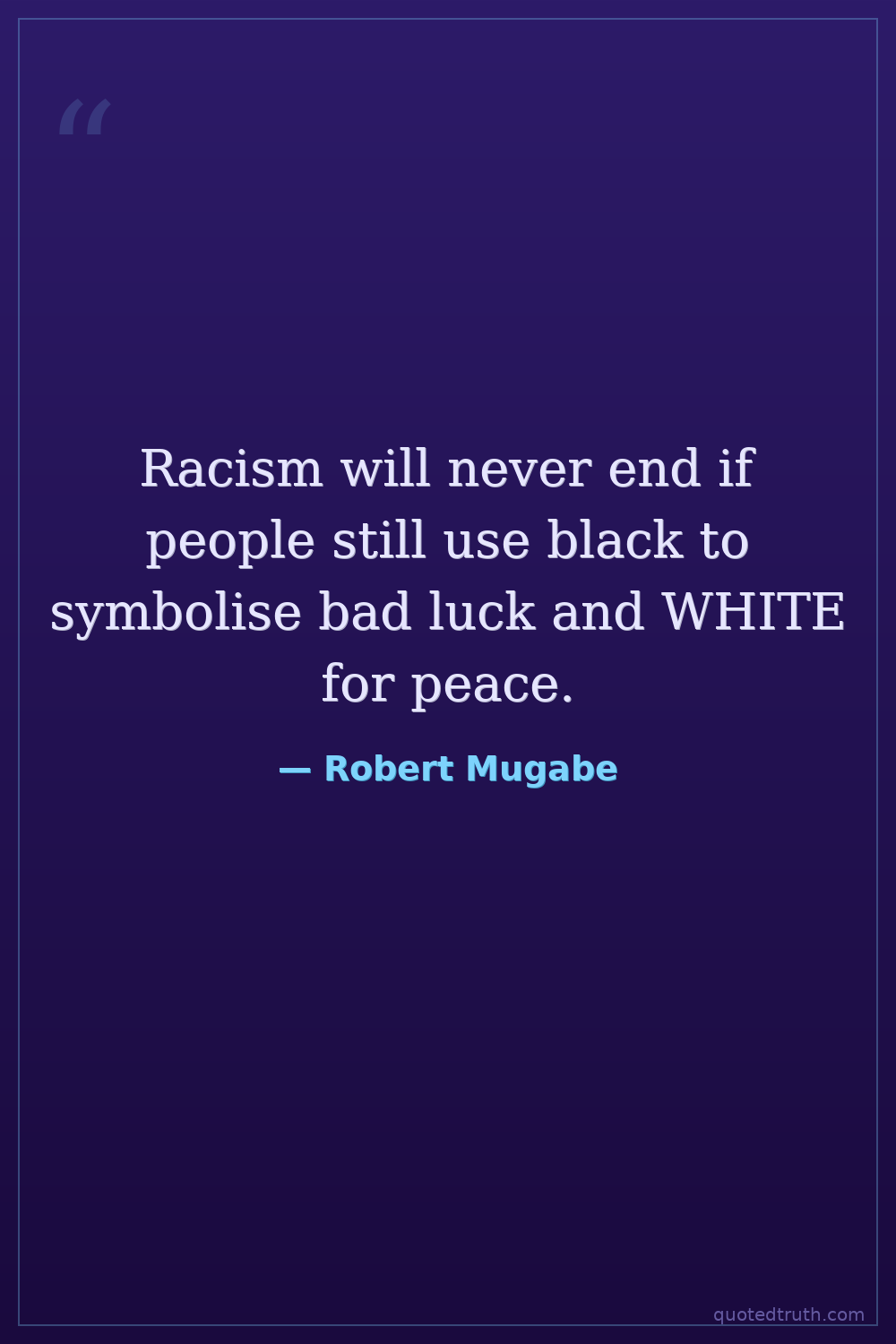Racism will never end if people still use black to symbolise bad luck and WHITE for peace.