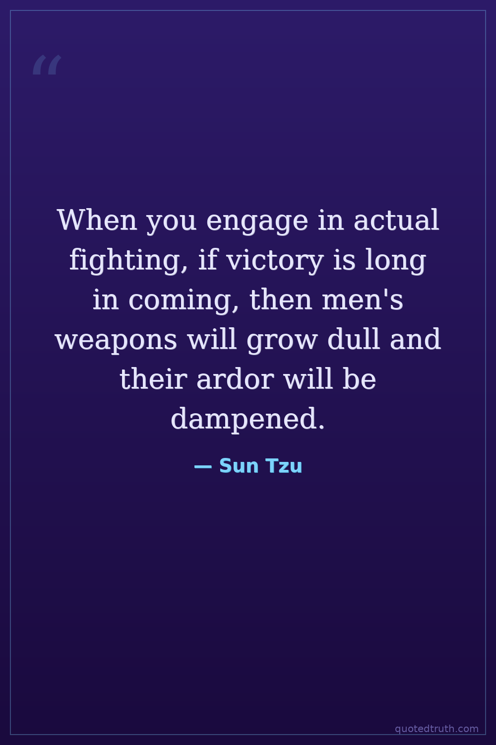 When you engage in actual fighting, if victory is long in coming, then men's weapons will grow dull and their ardor will be dampened.