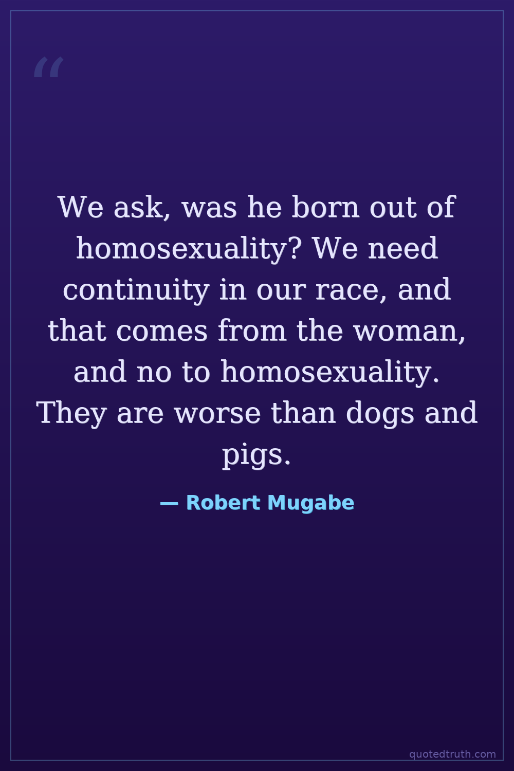 We ask, was he born out of homosexuality? We need continuity in our race, and that comes from the woman, and no to homosexuality. They are worse than dogs and pigs.