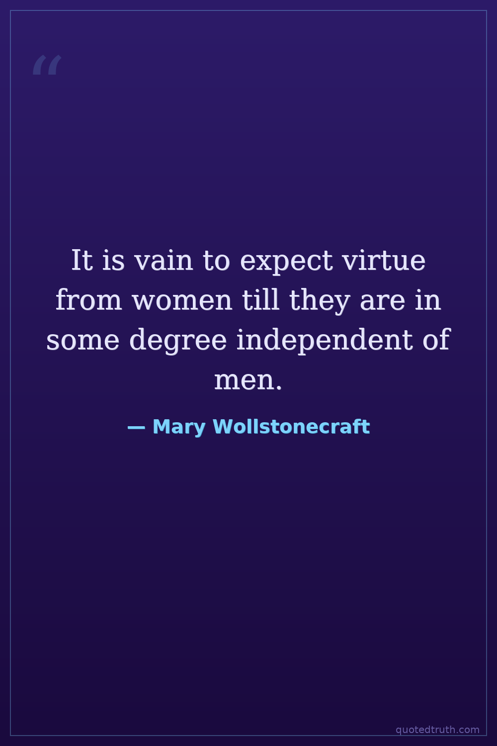 It is vain to expect virtue from women till they are in some degree independent of men.